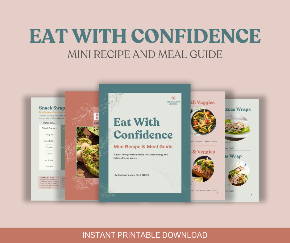 This printable guide includes easy, blood-sugar-friendly recipes, a 7-day meal plan, and a practical snack swap chart to help you eat with confidence and ease without restriction or overwhelm.