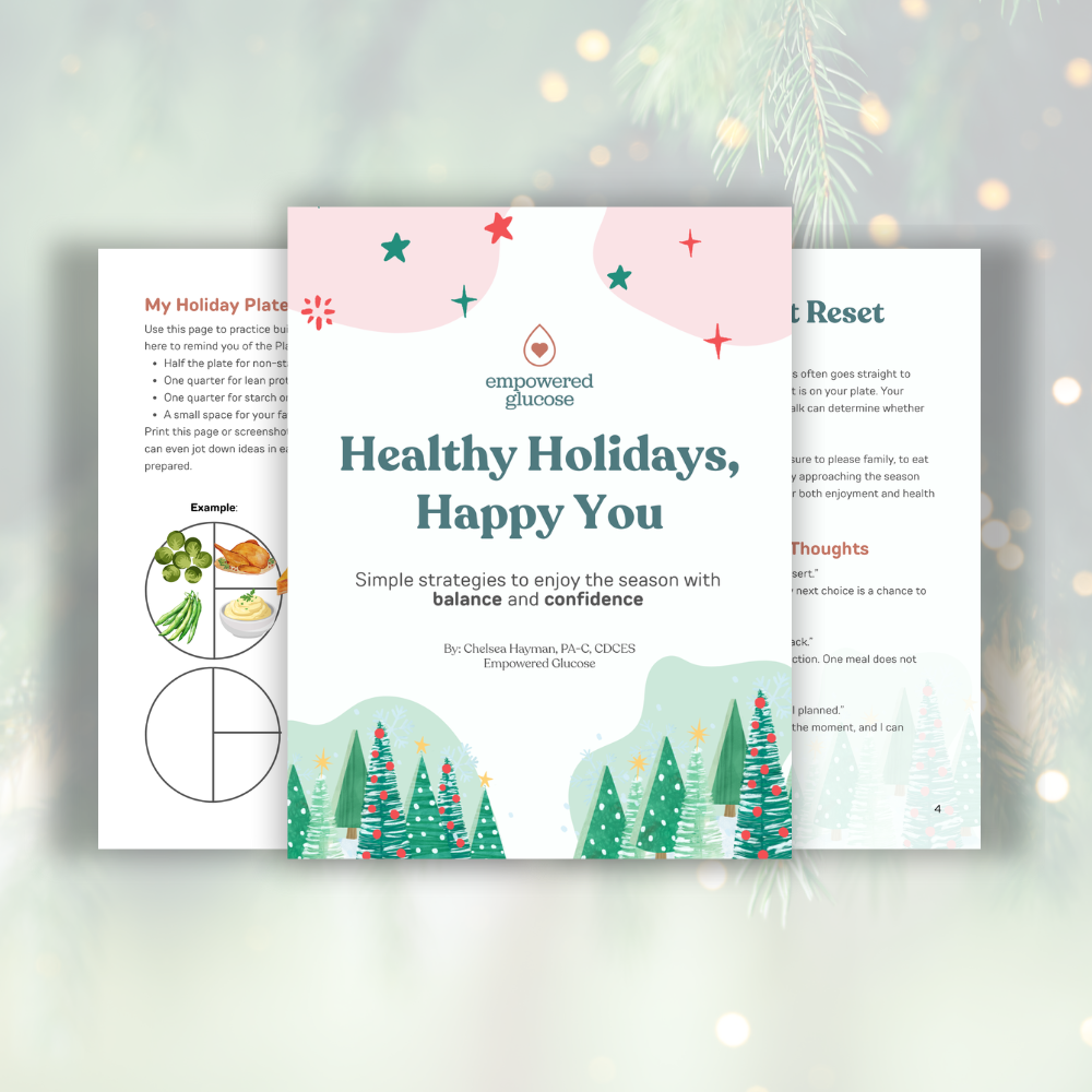 Simple tools to enjoy holiday foods, protect your blood sugar, and feel more confident with your choices. This printable guide gives you realistic swaps, plate visuals, and stress-free strategies so you can enjoy the season without feeling out of control.